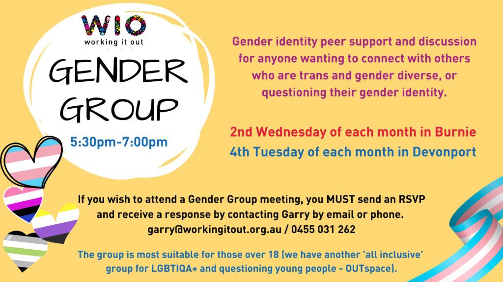 This group is intended for those people 18 years old and over. If you are under 18, we have another group that is all-inclusive called OUTSpace also held in Burnie and Devonport each month.