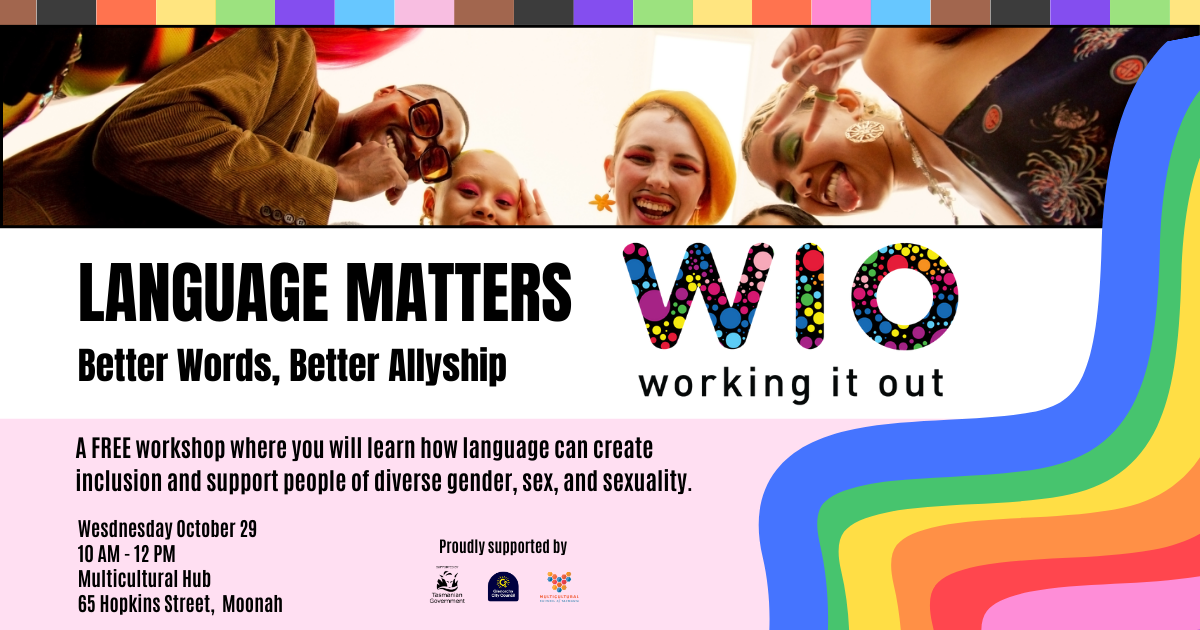 Language Matters Training - with Working It Out Language Matters Training with Working It OutMulticultural Hub, 65 Hopkins Street, Moonah Wednesday October 29, 10 - 12amCall the hub to book (03) 61709196 Better Words, Better Allyship Join The Glenorchy City Council for this free workshop where you will learn how language can create inclusion and […] |