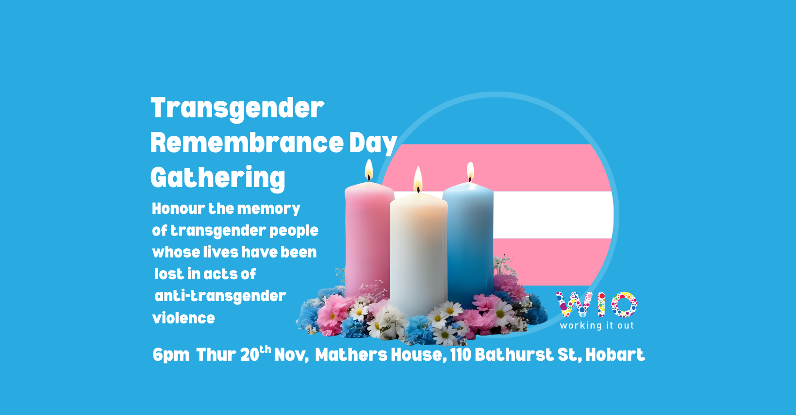 Honour the memory of transgender people whose lives have been lost in acts of anti-transgender violence. Join Working It Out, our transgender and gender diverse community and our allies at Mathers House (lower) for a remembrance gathering. "Transgender Day of Remembrance (TDOR) was started in 1999 by transgender advocate Gwendolyn Ann Smith as a vigil […] |