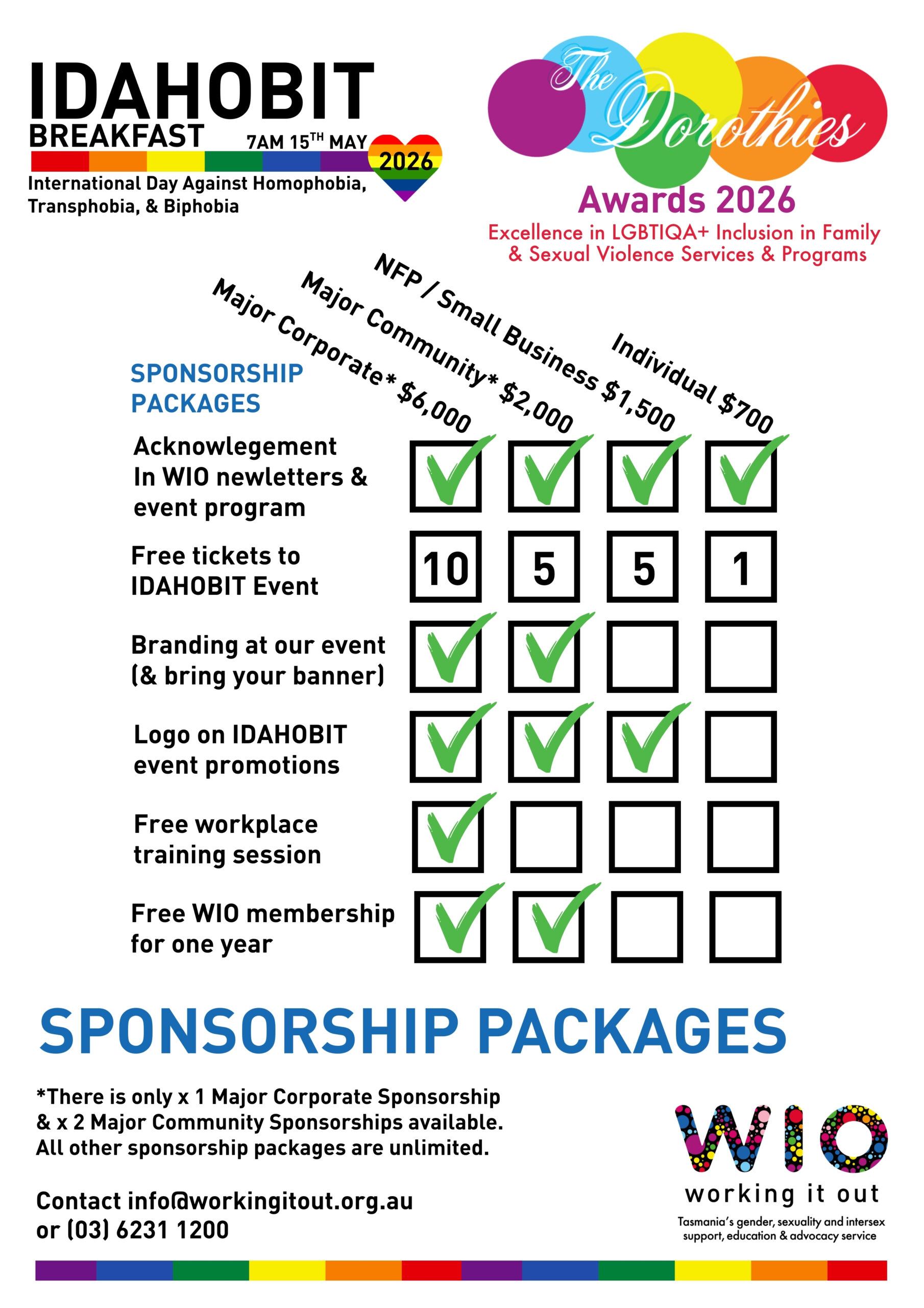 IDAHOBIT Breakfast / Dorothies Awards Event Sponsorship Packages
